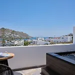 The Kalea Mykonos Ornos offers 17 rooms with air conditioning, as well as self-catering options such as a mini fridge bar. A separate toilet and a shower, along with hair dryers and towels, are provided in the bathroom.